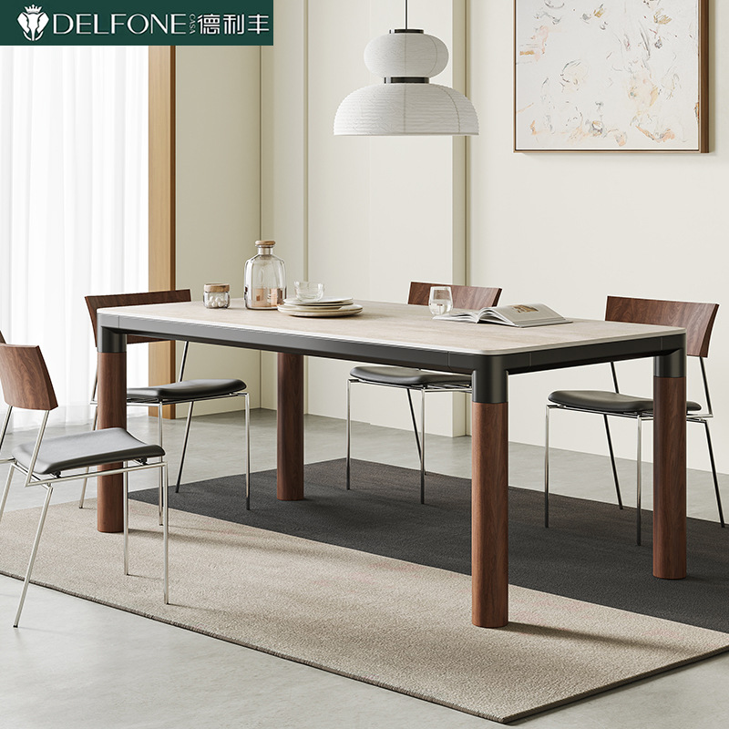 Meja Makan Papan Batu Kayu Solid Eropa Utara Modern Sederhana Meja Makan Persegi Panjang Unit Kecil Meja Makan Rumah Tangga Kombinasi Meja Makan dan Kursi