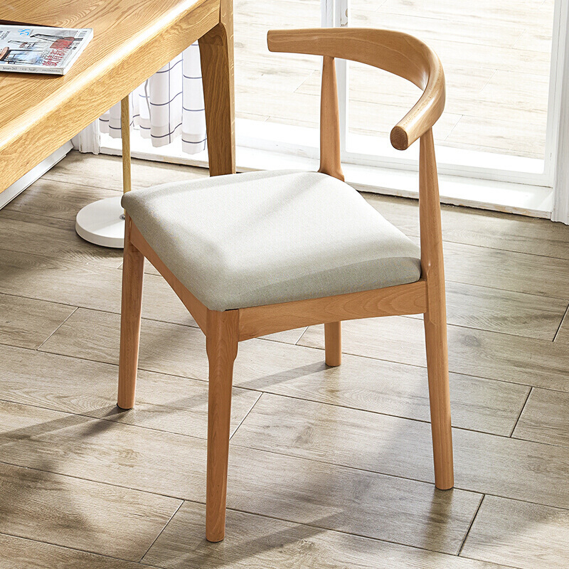 Aibiju kursi makan sederhana, kursi belakang rumah kayu solid tas lembut kursi klakson warna kayu putih permukaan linen