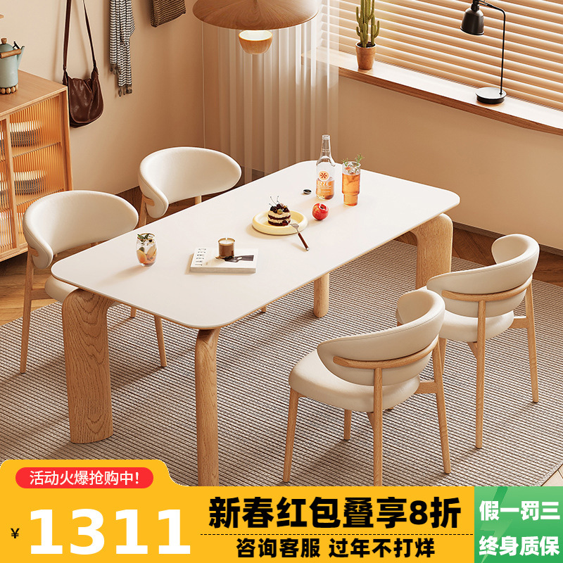 Meja Makan Papan Batu Mewah Ringan Modern Sederhana Rumah Tangga Kecil Sederhana Meja Makan Persegi Panjang Kombinasi Meja Makan dan Kursi Ruang Tamu