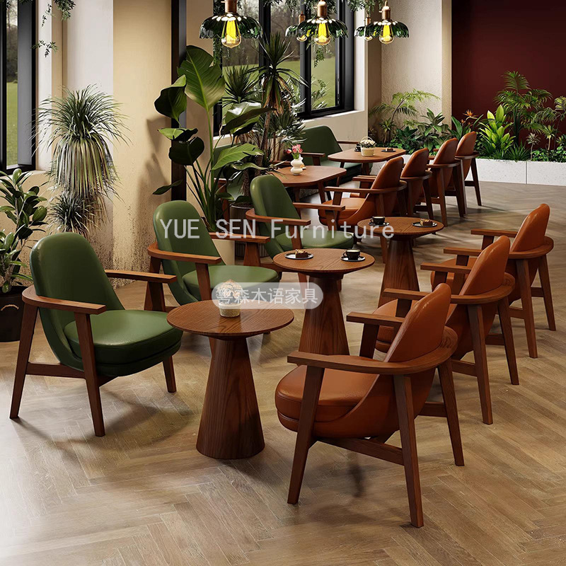 Kombinasi Meja dan Kursi Santai Kafe Toko Teh Susu Area Istirahat Area Duduk Sofa Kursi Kartu Kayu Solid Coody Toko Makanan Penutup Meja dan Kursi
