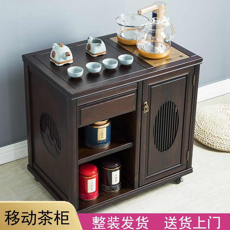 Kabinet teh portabel, lemari teh kecil, meja teh, rak penyimpanan samping, kayu solid, ember bawah, kabinet teh terintegrasi