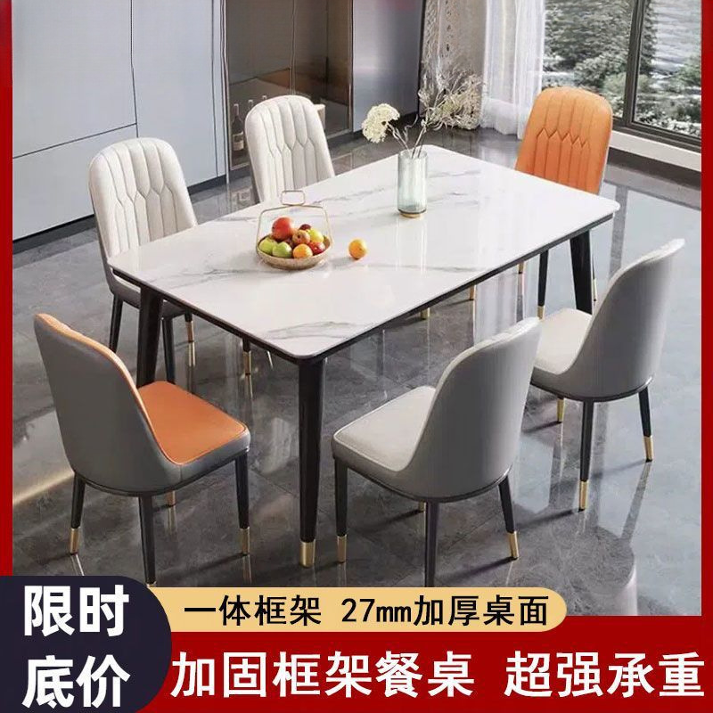 Meja Makan Papan Batu Bingkai Terpadu Meja Ruang Tamu Meja Persegi Panjang Rumah Tangga Meja Makan Kombinasi Meja Makan dan Kursi Unit Kecil Sederhana Modern
