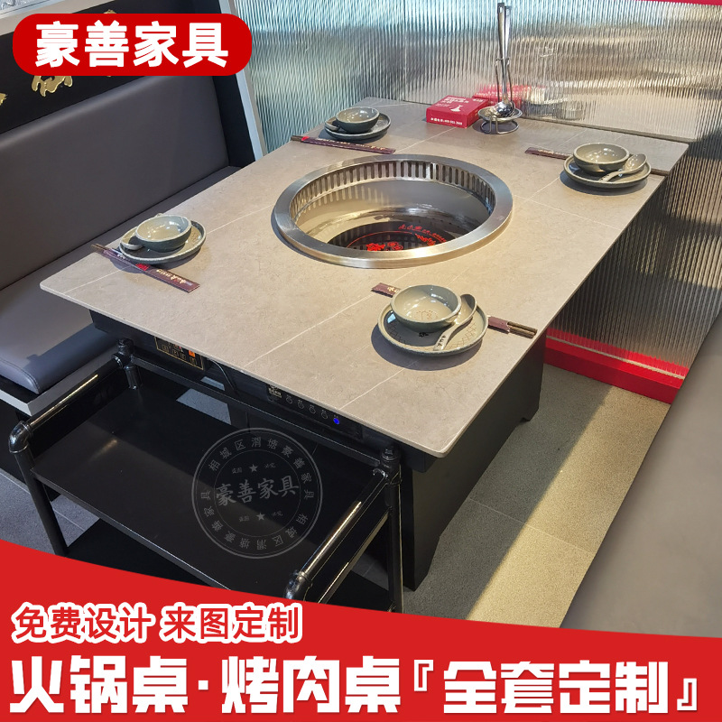 Marmer panci panas tanpa asap meja, kombinasi meja dan kursi, toko barbekyu gas pemurni sendiri komersial terintegrasi
