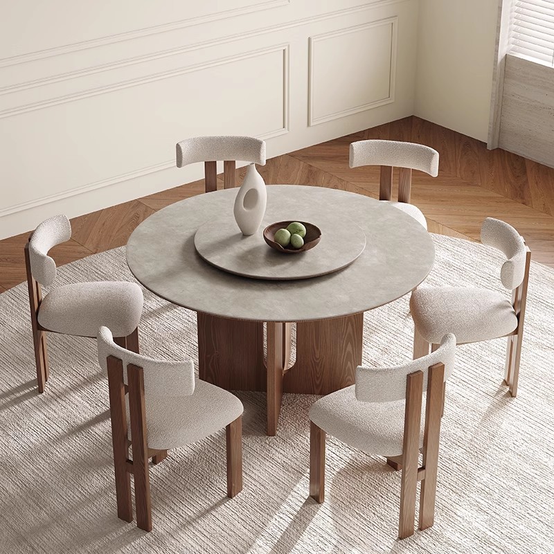 Meja Makan Bentuk Bulat Retro Rumah Tangga Tipe Kecil Kayu Solid dengan Meja Putar Putar Meja Makan Batu Bulat Restoran Prancis