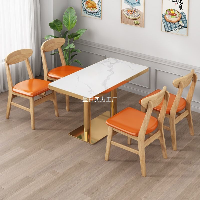 Meja Makanan Cepat Saji Kayu Solid Meja Makan Komersial Papan Batu Toko Hot Panggang Toko Makanan Kecil Sederhana Toko Mie Meja Kursi Ramen Daging Sapi