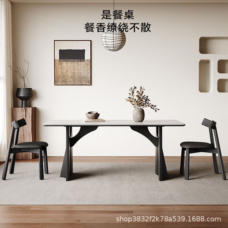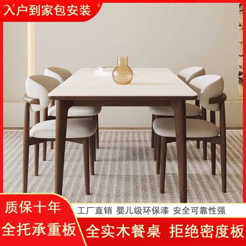 Meja Makan Papan Batu Kayu Solid Eropa Utara Modern Sederhana Meja Makan Persegi Panjang Unit Kecil Meja Makan Rumah Tangga Kombinasi Meja Makan dan Kursi