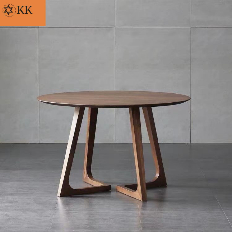 Meja Bundar Gaya Pertengahan Meja Makan Kayu Solid Walnut Hitam Kombinasi Meja Makan Retro Tipe Rumah Tangga Kecil Bentuk Bundar dengan Piring Berputar