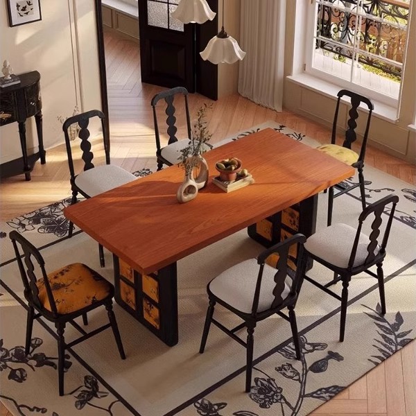 Meja Makan Retro Prancis 2025 Meja Makan Model Baru Meja Makan Kayu Solid Rumah Tangga Meja Makan Meja Makan Pulau Ruang Tamu Gaya Kuno