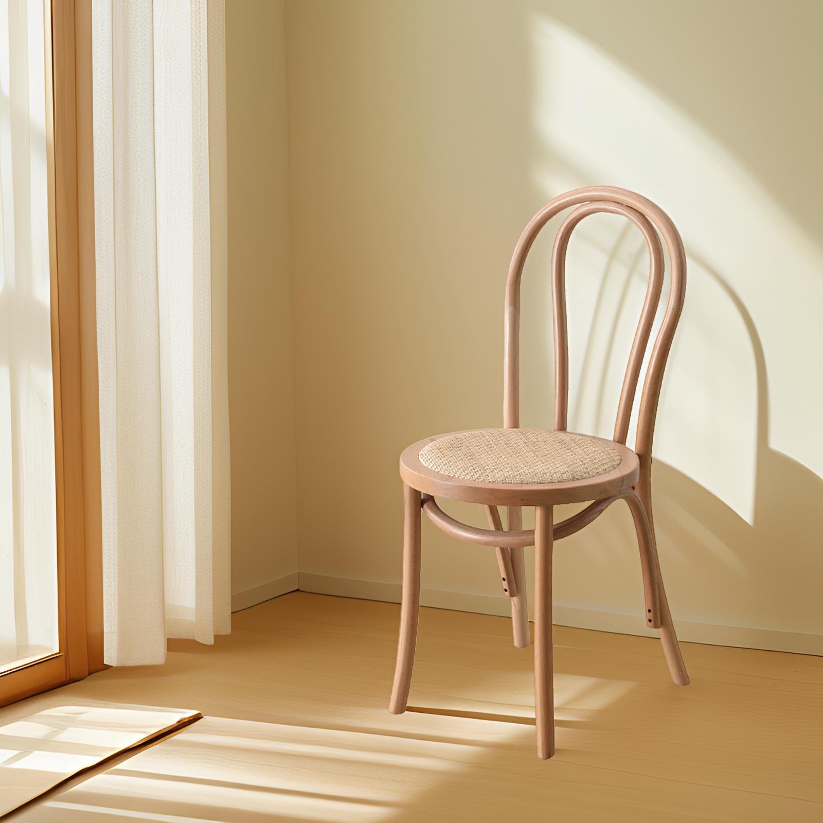 Kursi kepang kayu Nordic, kayu solid sederhana sandaran rumah ruang makan kursi makanan penutup susu toko teh kreatif Jepang anyaman rotan kursi makan