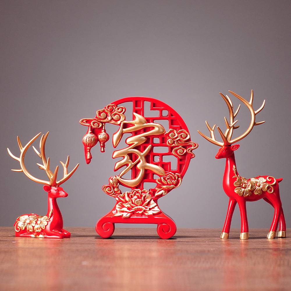 Kabinet anggur dekorasi ruang tamu gaya China baru dekorasi hewan lorong kabinet belajar TV kerajinan rusa grosir kreatif