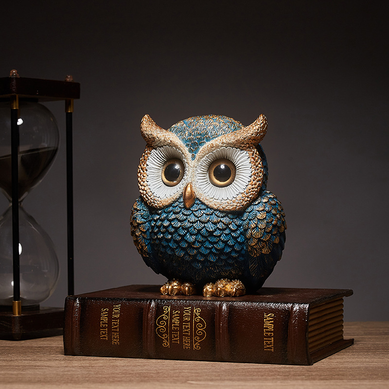 跨境美式复古猫头鹰桌面小摆件电视柜酒柜装饰树脂工艺品乔迁礼物
