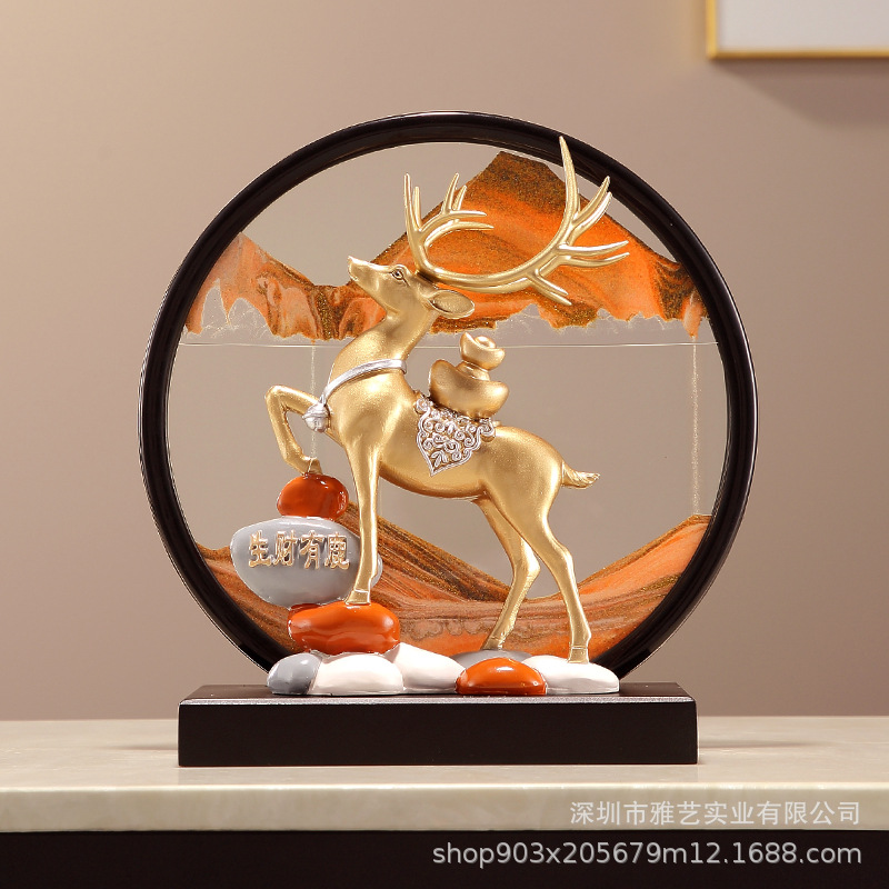 生财有鹿流沙风景画摆件中式客厅玄关酒柜装饰品开业乔迁新居礼物