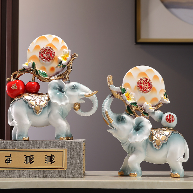 招财纳福大象摆件一对客厅玄关电视酒柜装饰品乔迁新居搬家礼物品