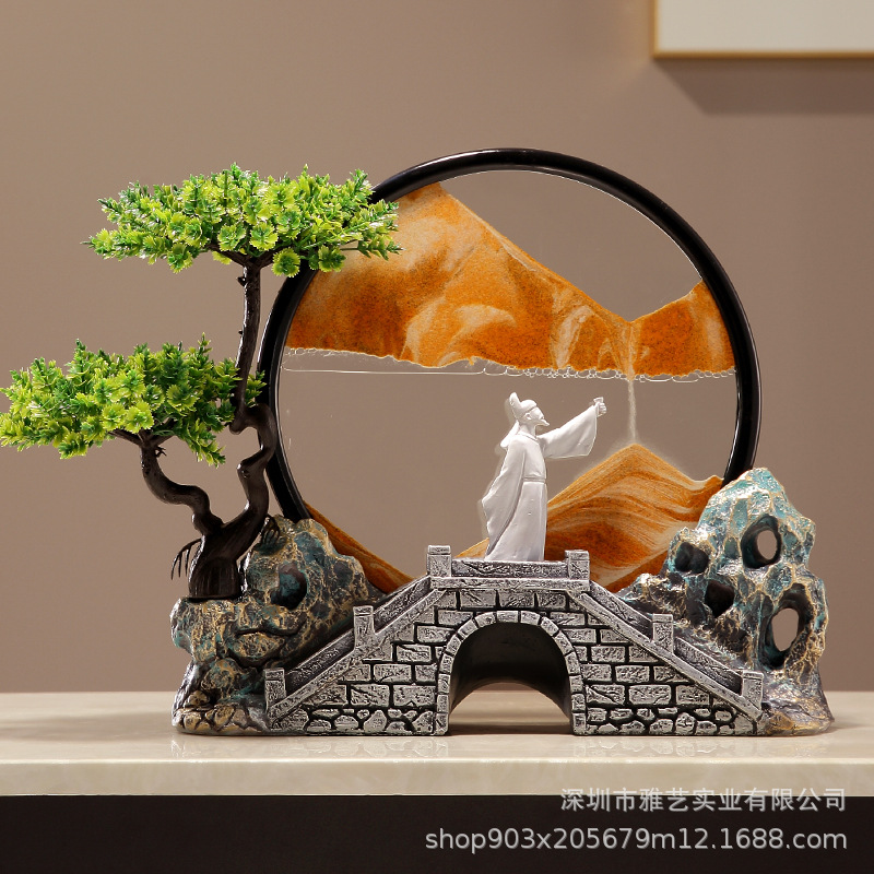 新中式李白把酒问月流沙画风景摆件客厅电视柜酒柜装饰品开业礼物