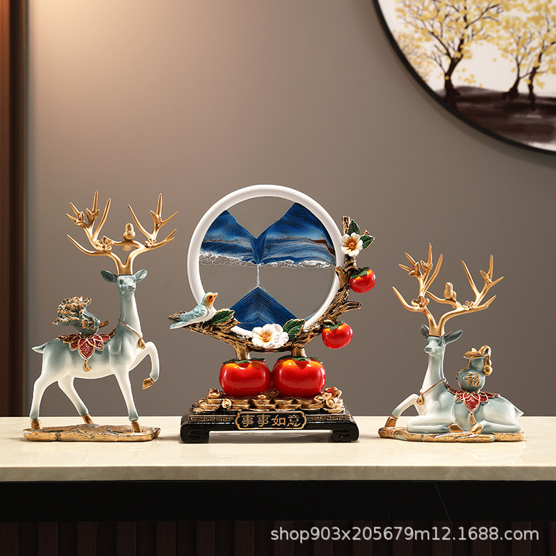 Jam pasir dekorasi kreatif lukisan rusa ruang tamu pintu masuk lemari anggur cahaya mewah dekorasi rumah hadiah rumah baru