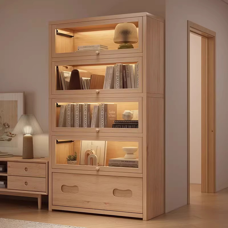 实木书架落地置物柜书柜防尘大容量学生桌边柜展示柜置物架收纳柜