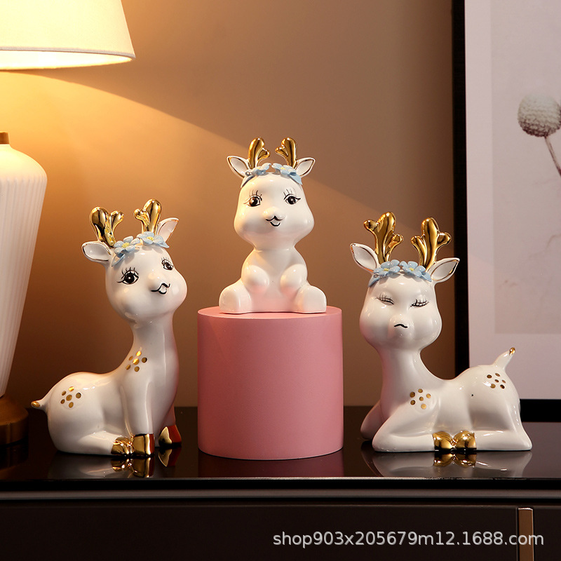 Keluarga tiga ornamen rusa mewah cahaya lemari anggur lorong dekorasi desktop rusa lintas batas grosir keramik kreatif