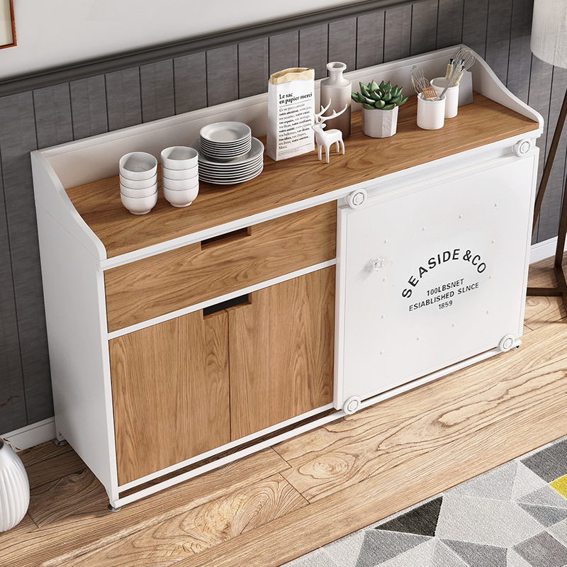 Kabinet papan samping kayu padat Nordik, kabinet penyimpanan dapur rumah tangga sederhana, kabinet anggur ruang tamu kabinet teh terintegrasi Dinding