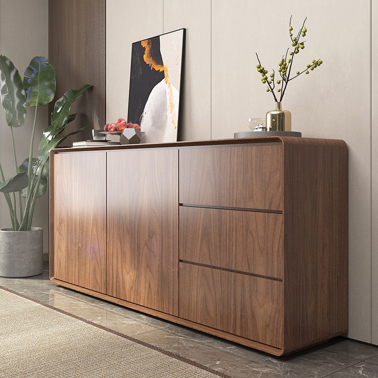 Kabinet papan samping kayu padat minimalis Modern kabinet penyimpanan apartemen kecil dan sedang lemari anggur restoran kenari hitam Nordik