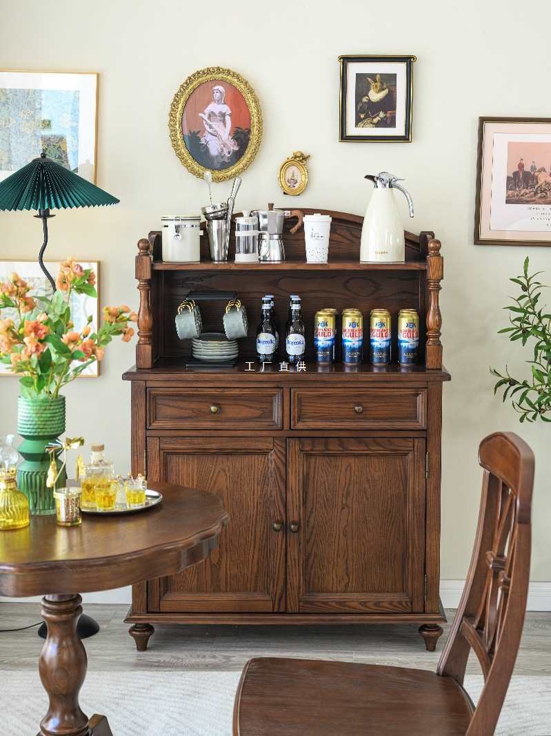 Lemari Samping Kayu Solid Retro Gaya Amerika Lemari Penyimpanan Dinding Restoran Tua Lemari Penyimpanan Barang Lemari Kaca Lemari Teh