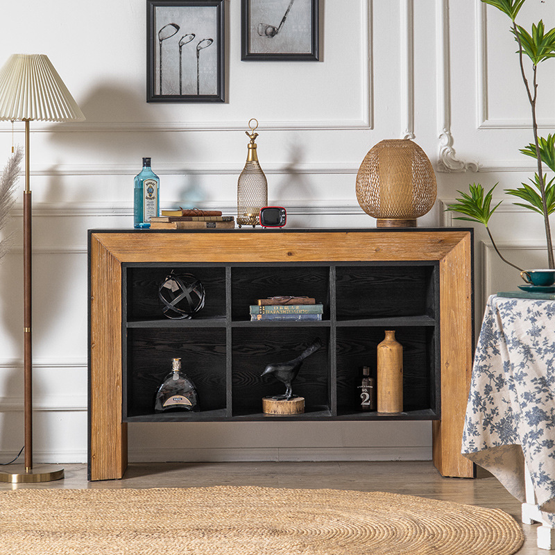 Kabinet sideboard retro Amerika kabinet tampilan rumah kabinet TV ruang tamu kombinasi kabinet penyimpanan banyak tingkat kabinet meja teh kayu solid kabinet anggur