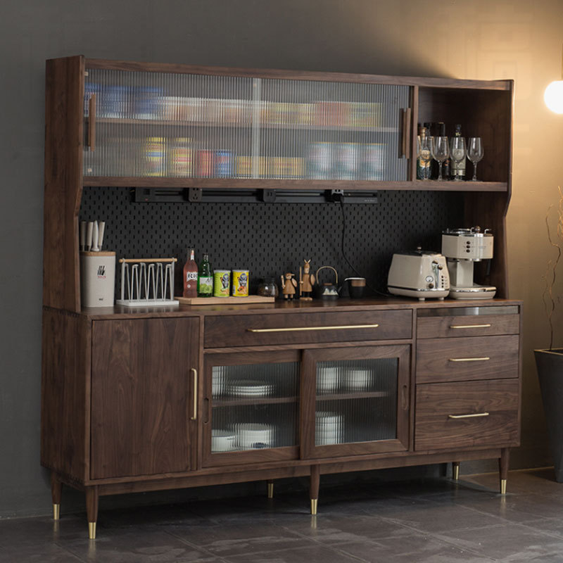 Kabinet papan samping kayu padat kenari hitam Amerika Utara kabinet anggur terpasang di dinding kabinet teh kabinet tinggi papan gembok batu