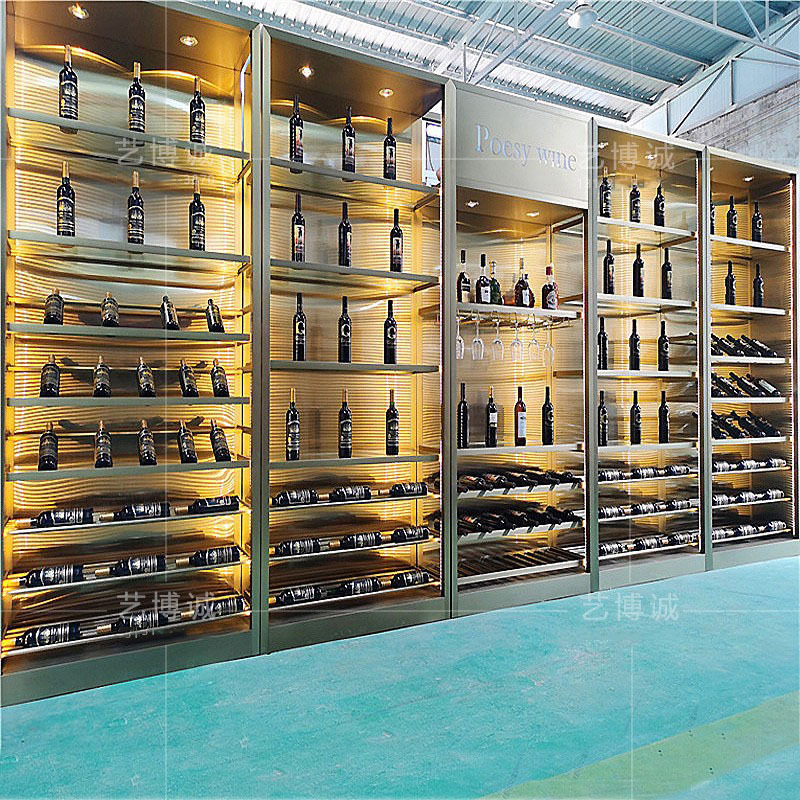 Desain disesuaikan kabinet anggur Chateau rak antik kabinet pajangan anggur miring wine kelas atas baja tahan karat