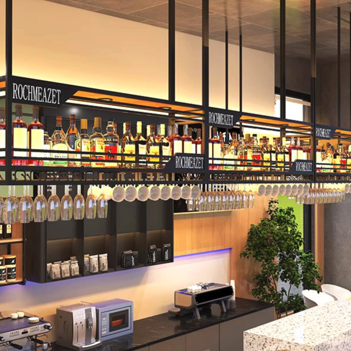 Rak Wine bar gaya industri terbalik, rak gelas anggur gantung rak penyimpanan musik makan bar gantungan besi kabinet anggur
