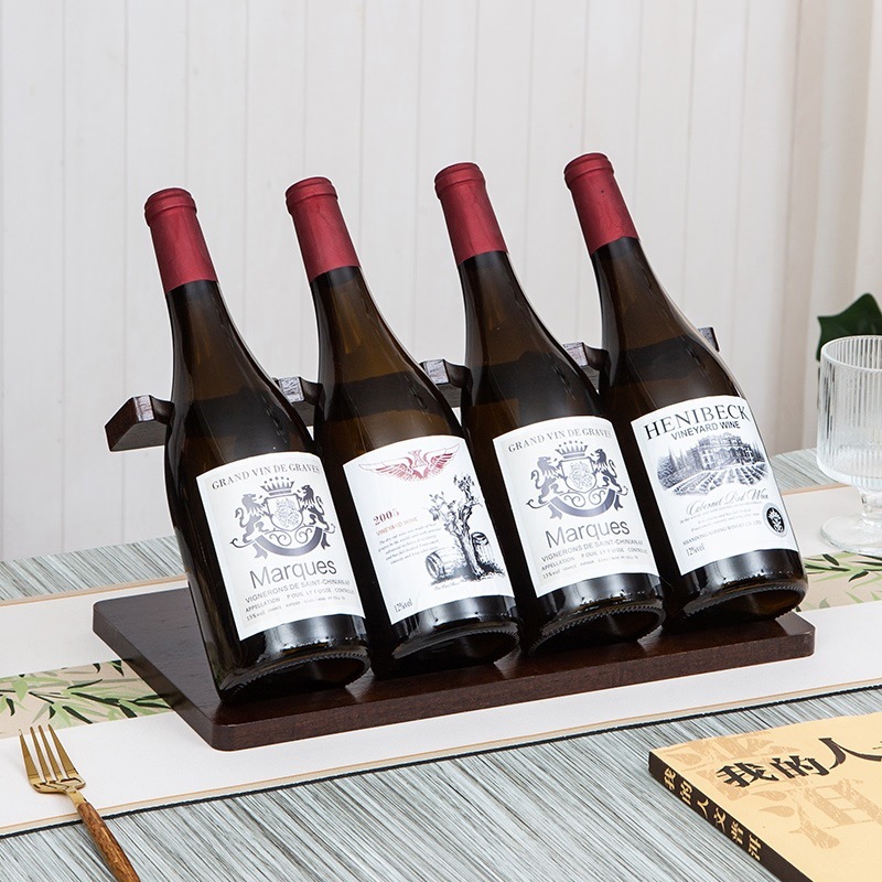 Rak Anggur Merah Kayu Solid Model Baru Rak Tampilan Sederhana Kayu Karet Rak Anggur Retro Komersial Dekorasi Bebas Kuku