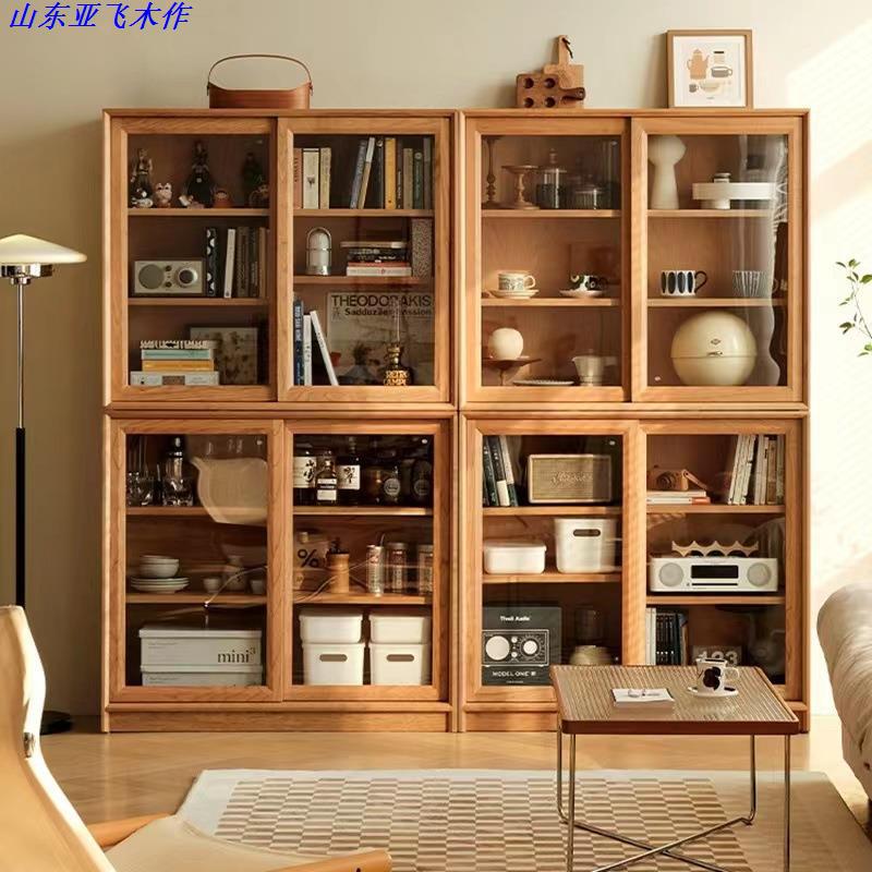 Kabinet buku kayu padat Cherry Wood kombinasi loker lantai hitam walnut kabinet tampilan ruang tamu kabinet anggur kabinet sederhana