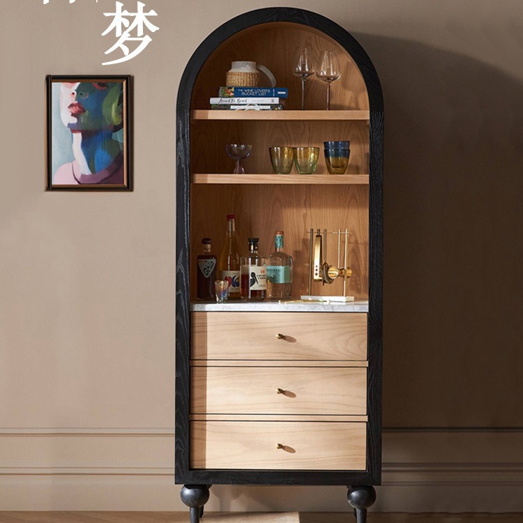 Casing buku kayu padat gaya Amerika, cahaya putih mewah pintu kaca ruang tamu tampilan lemari anggur Perancis retro tempat tidur & sarapan lengkungan kabinet dekoratif