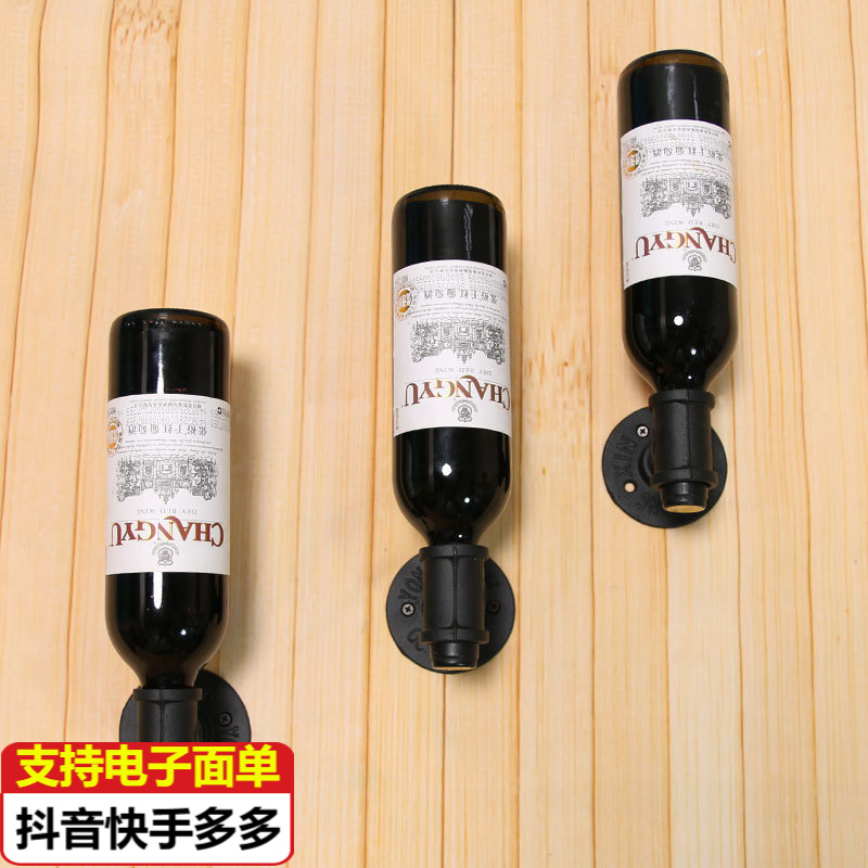 Rak dinding anggur kreatif, besi terpasang di dinding rak dekorasi rumah ruang tamu bar tampilan dinding