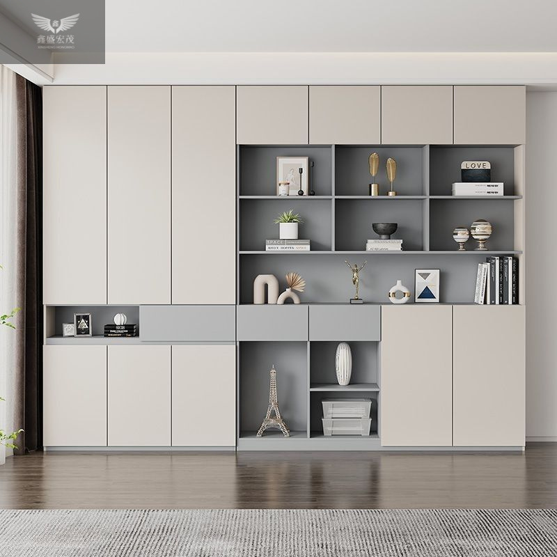 Lemari Buku Kayu Solid Lemari Tampilan Tangan Sederhana Rumah Tangga Ruang Tamu Lemari Anggur Kombinasi Dinding Ke Atas