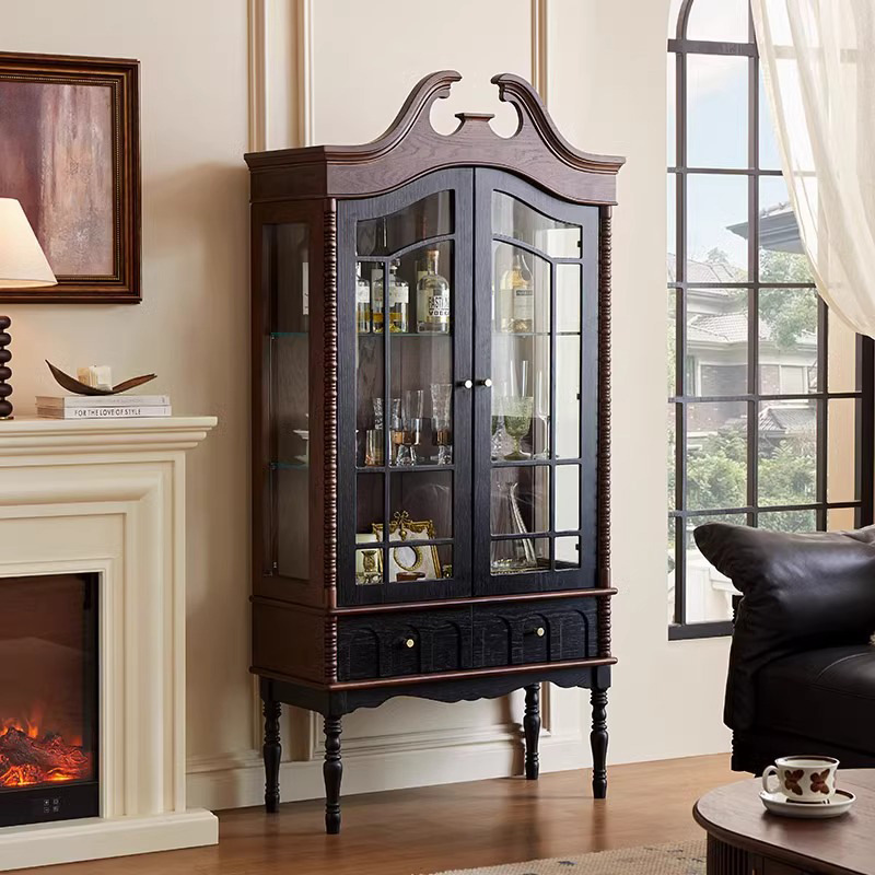 Lemari Anggur Kayu Solid Retro Prancis Lemari Samping Dinding Gaya Nanyang Ruang Tamu Sederhana Lemari Tampilan Rak Buku Kaca Mewah Ringan Gaya Amerika