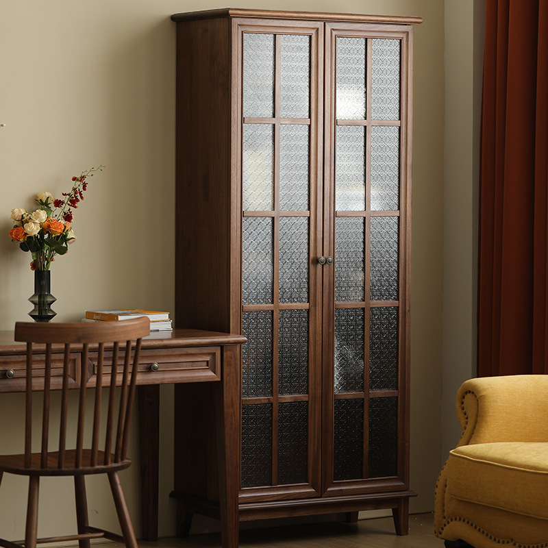 Kasus buku kayu solid gaya Amerika Utara kabinet samping kenari hitam kabinet rak buku minimalis modern lemari penyimpanan loker kabinet anggur kuno setengah