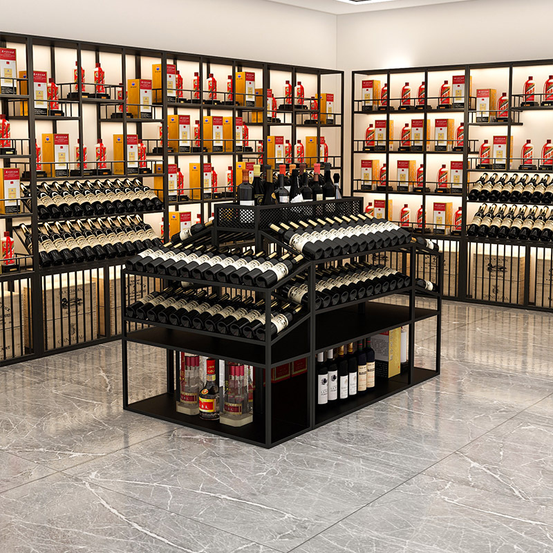 Kabinet display anggur dan minuman keras untuk seluruh toko, garis anggur, terpasang di dinding, rak pajangan anggur dan minuman keras, kabinet anggur latar belakang bar