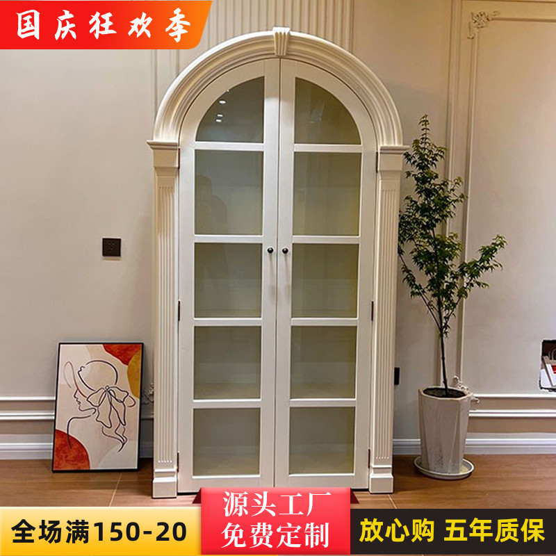 Negara Perancis retro tertekan kayu padat pintu ganda rak buku setengah lingkaran pintu kaca melengkung kabinet anggur lemari lemari samping
