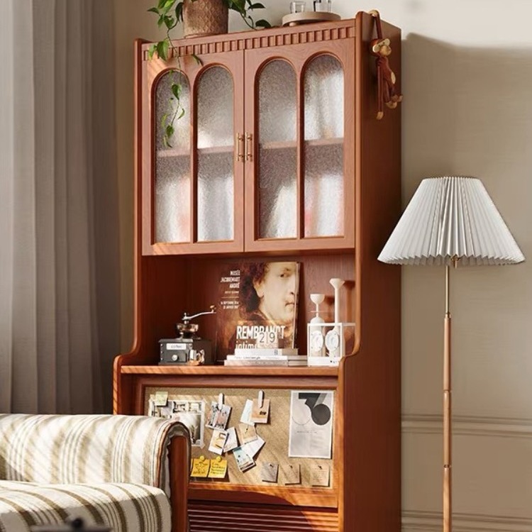 Lemari buku kayu padat gaya Amerika lampu untuk anak-anak lantai kecil rak buku dekoratif lemari anggur Nordik kabinet samping lengkungan retro Perancis