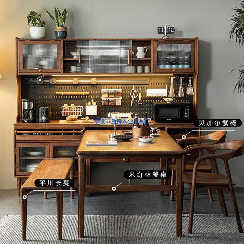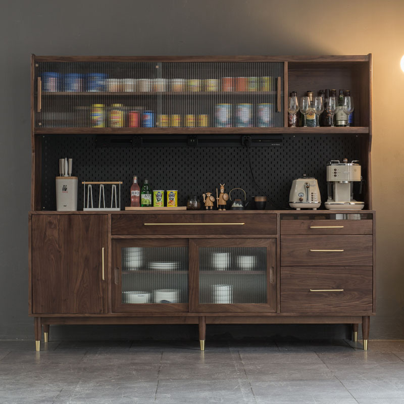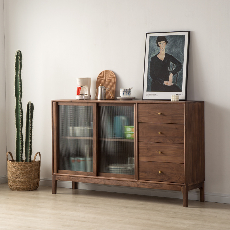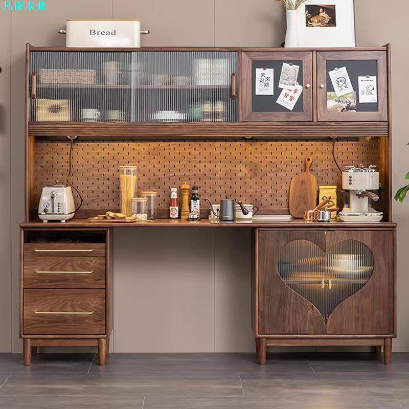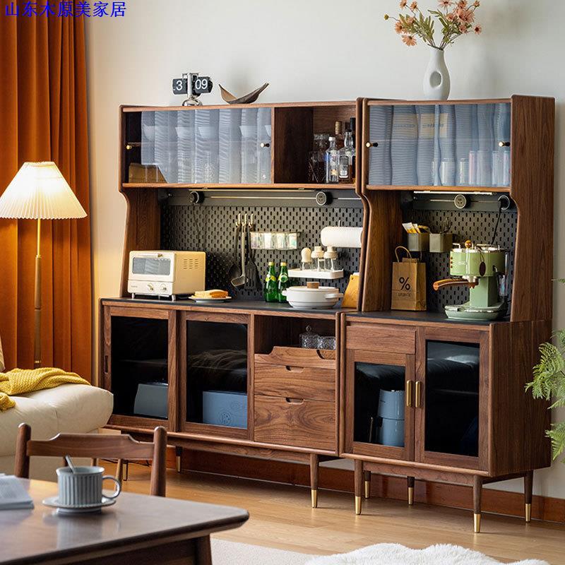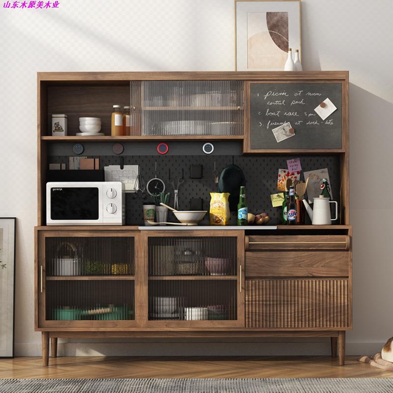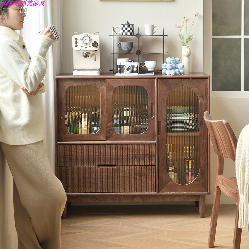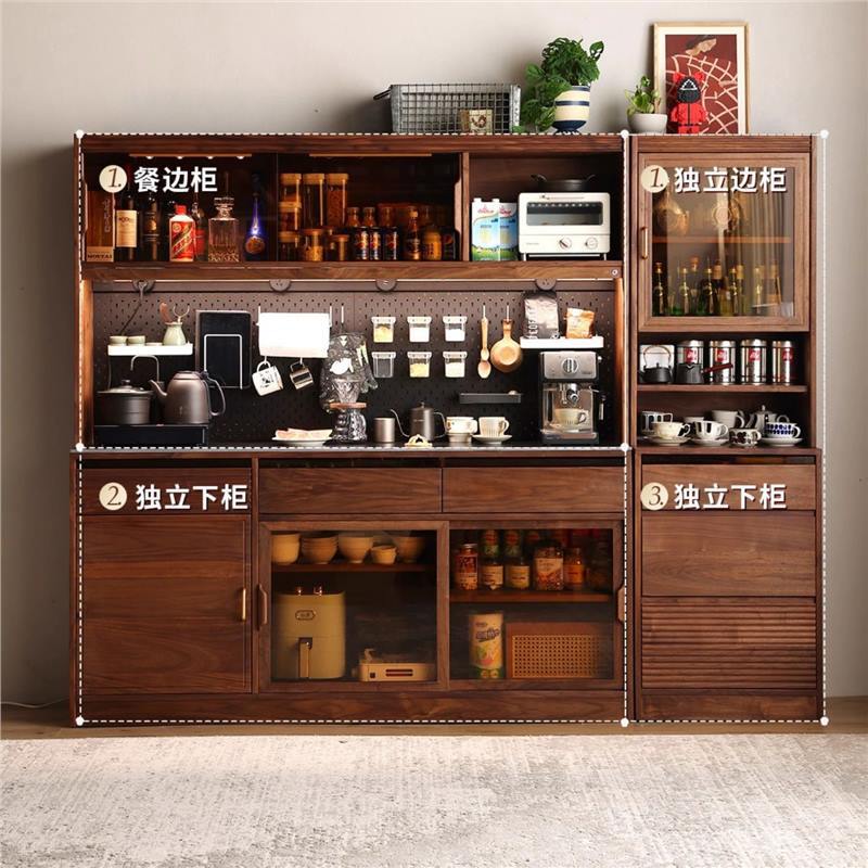 Kabinet dapur papan samping kayu padat kenari hitam Nordic lemari penyimpanan anggur Restoran Sederhana apartemen kecil kabinet penyimpanan kayu ek putih