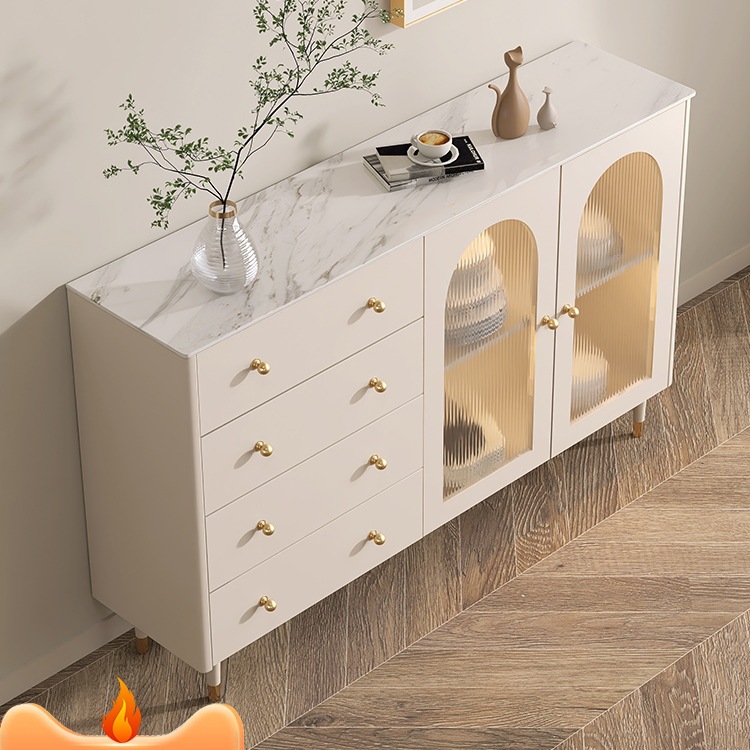 J ^ Lemari Samping Papan Batu Mewah Ringan Gaya Krim Lemari Dapur Ruang Tamu Sederhana Modern Lemari Minuman Keras Penyimpanan Rumah Tangga di Dinding
