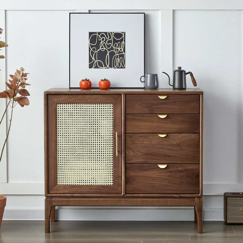 Lemari Samping Kayu Walnut Hitam Amerika Utara Lemari Samping TV Kayu Solid Ruang Tamu Sederhana Eropa Utara Lemari Samping Sofa Lemari Samping Samping Meja Minuman Anggur