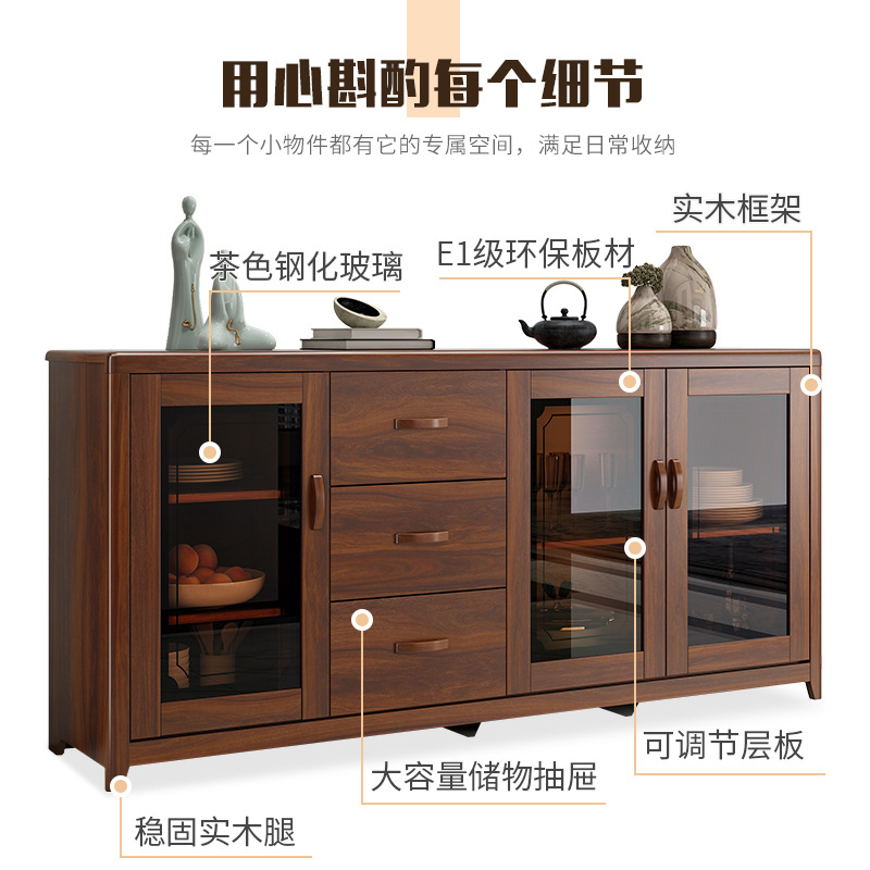 Kabinet samping dinding kayu solid rumah tangga, lemari teh minimalis kapasitas besar piring batu penyimpanan
