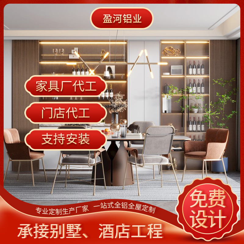 Kombinasi pintu kaca dinding, furnitur alumunium Aloi gaya modern, dinding rumah, Penyimpanan multifungsi, kabinet anggur sisi makan