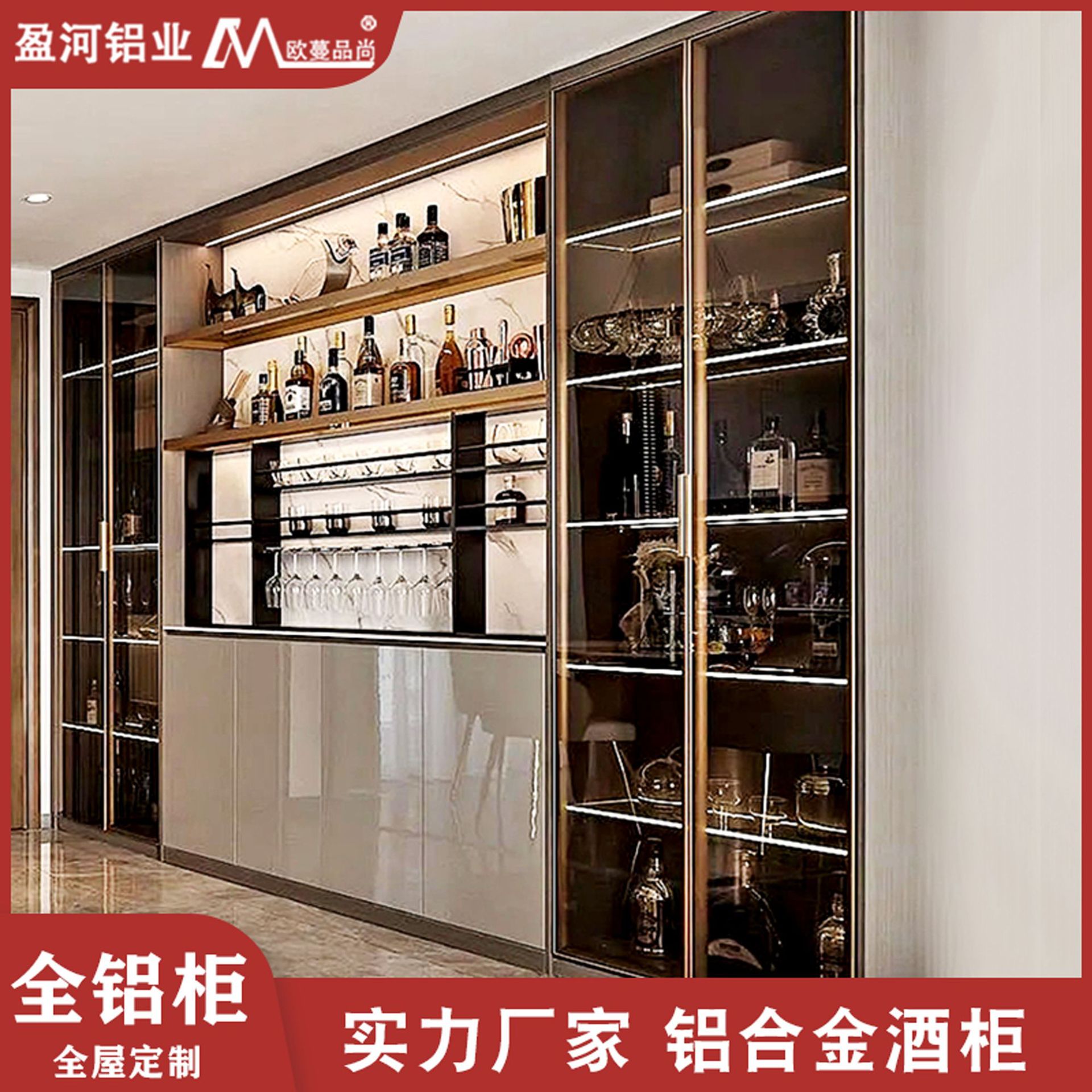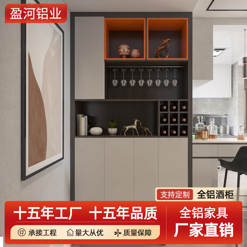 Pabrik langsung furnitur aluminium modern cahaya mewah rumah ruang tamu dinding multi-fungsi aluminium Aloi kabinet anggur kustomisasi produsen
