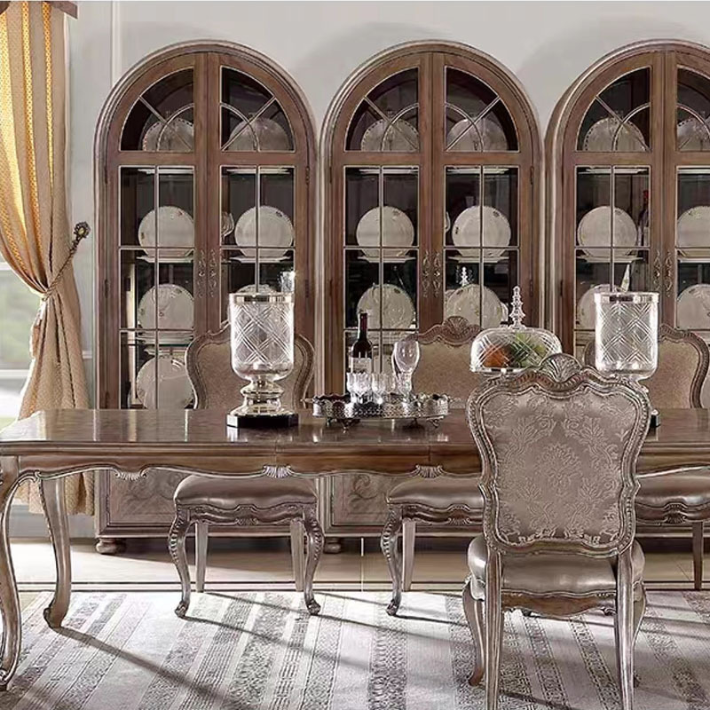 Kabinet peraga kabinet anggur kayu solid retro gaya Eropa lemari buku pintu kaca melengkung banyak lapisan dinding ruang tamu rumah