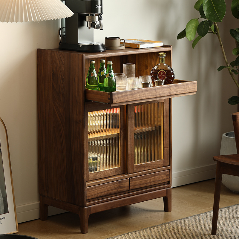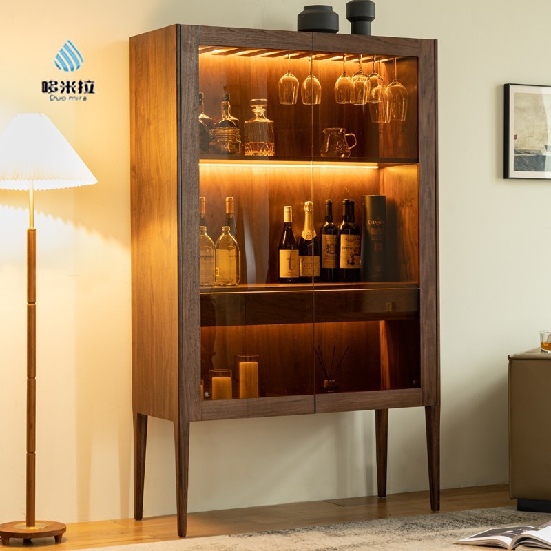 Kabinet anggur kayu padat kenari hitam Amerika Utara kabinet penyimpanan ruang tamu multifungsi sederhana Cherry Oak kabinet Tinggi