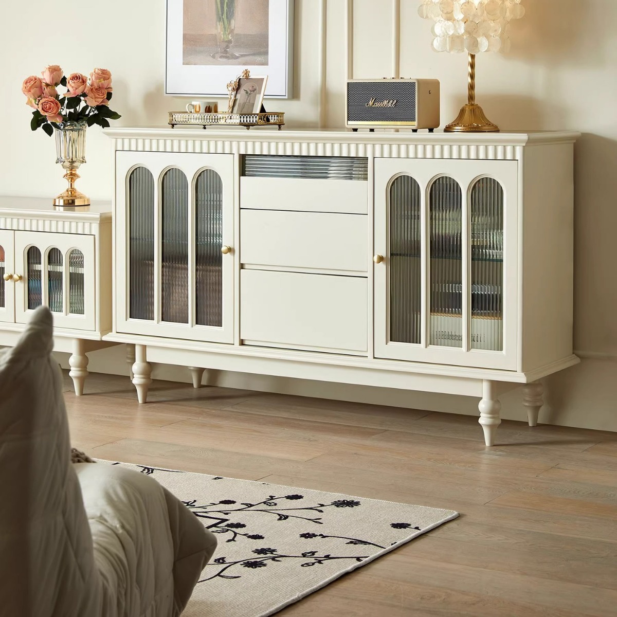 Kabinet samping kayu solid, gaya Amerika ringan mewah sederhana untuk lemari rumah tangga ruang tamu lemari penyimpanan kaca anggur kabinet samping