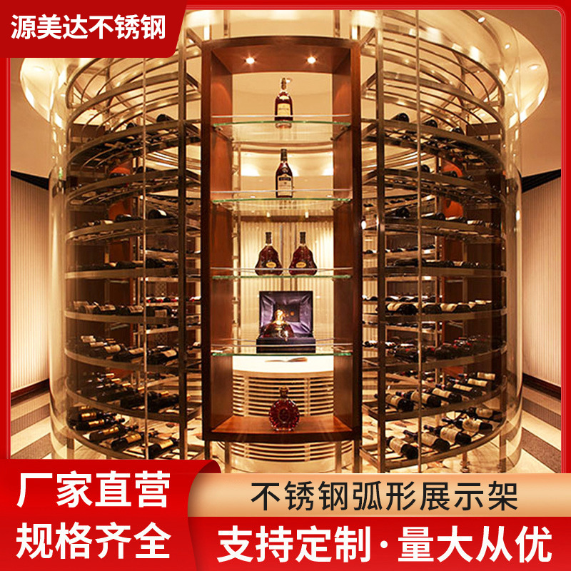 Pasokan pabrik kaca anggur bulat baja antikarat rak cincin kabinet anggur lemari dekorasi besi tahan karat