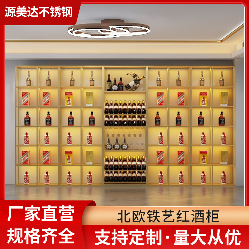 Kabinet anggur besi tahan karat, kabinet dekorasi rumah tangga display logam sesuai pesanan, kabinet anggur minuman keras mewah