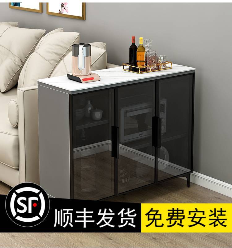 Piring samping lemari modern minimalis, lemari teh penyimpanan ruang tamu, lemari dapur rumah, dinding terintegrasi, kabinet anggur mewah ringan